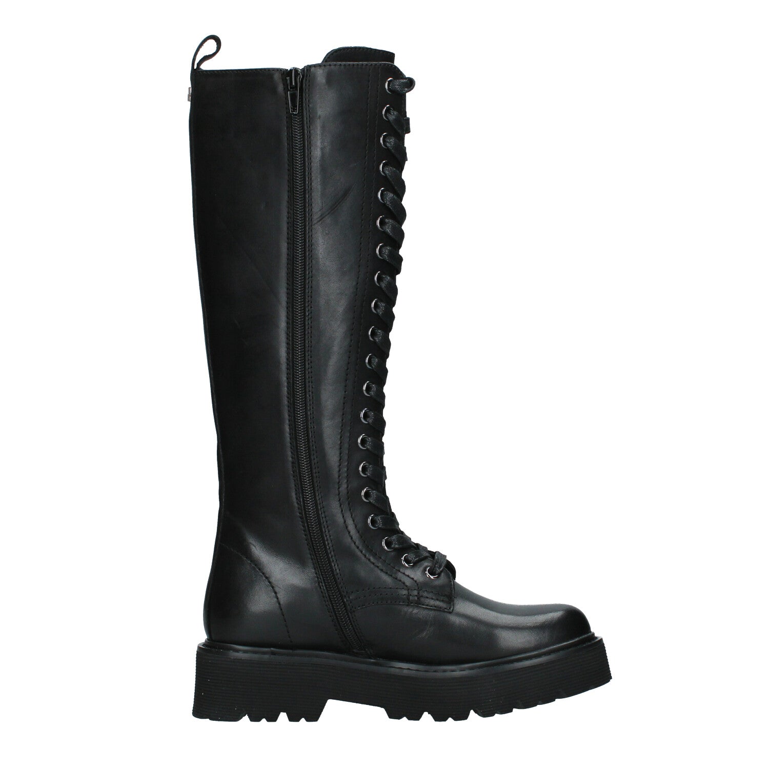 Descrizione: Comodi e dalla linea urban chic questi stivali firmati da Cult. In pelle nera, con chiusura tramite stringhe su occhielli tono su tono, questi stivali saranno il complemento perfetto dei vostri outfit invernali.